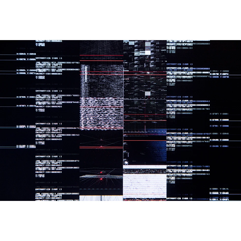 本作的核心是9台顯示器上如洪流般的眾多數據。對於自稱作曲家(Composer)的池田來說,貫穿其音樂和視覺藝術作品的共通之處是以數據(data)來構建可被觀察到的普遍性。本作是名為「datamatics」項目的其中一部分,該項目自2006年以來便持續進行。假設數據是表達世界的最小單位,那可見的光便是像素,可聽的聲音便是頻率,將其提高至極限便會呈現出無限廣闊的世界。池田所表現的是「無形且多樣的實體性」,而人類則將數據視為把無形變成有形的有效指標。在本作中,9台顯示器分別表現了不同的視覺效果,但它們都是經電腦操縱,在二維顯示器中,這些數據被可視化,呈現了一個多維空間的模型。在這些早已遠遠超出人類處理能力的信息洪流面前,我們或不再被問及其意味為何。我們只能以一種類似於崇高的敬畏之心來面對這樣一個事實:這些正確且無形的概念,通過大量信息和計算而被觀測,並表現為一個看得見的現象。本作於2022年在弘前當代美術館的個展及岡山藝術交流 2022上展出。