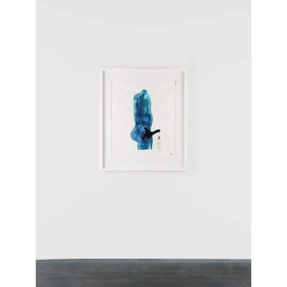 「Do Not Abandon Me」はルイーズ・ブルジョワとトレーシー・エミンによる合作であり、ブルジョワが2010年に没する直前に完遂された、彼女にとっての最後のプロジェクトでもある。本来は16枚の連作として発表されており、本作「Just Hanging」はシリーズ内の11番目の作品となる。エミンはブルジョワに深い影響を受けていることを明かしているが、その両者に通奏する身体性への関心が一連のドローイング制作における協業を通して豊かに共鳴している。独立したアーティスト同士のコラボレーションは度々行われるが、ここまで本質的な親和性を示す合作は珍しいだろう。制作にあたっては、まずブルジョワがルーズな絵具の広がりを使って横を向いた人物のボディを描いた。ブルジョワによる描画部分は、妊娠した女性の腹部と勃起した男性器を描いたものとが半数づつあり、それらに対してエミンが後から線描を加筆している。ブルジョワの描写は男性と女性の身体と生殖的役割についてシンプルで定型的な記号化がなされている。その記号的かつ象徴的な描写にエミンが具体的なストーリー性を持ち込み、それぞれの作品個別の性格を付与している。生殖本能に根ざした身体的性差を極めて端的に示したブルジョワに対して、性愛や感情のヴァリエーションを生々しくも細やかに描き分けたエミン、という両者の身体および人間観の差異がこのコラボレーションをより興味深いものとしている。本作においては、いかにも雄々しい男性器にかけられた縄状のものによって力なく吊るされた女性像が描かれている。本作の個別タイトルが「Just Hanging」とあるようにただぶら下がっているだけ、と素直に受け止めるにはあまりに衝撃的な光景であることは否めない。「Do Not Abandon Me」というシリーズタイトルに預けられた共依存性が暗に示すものは、広義には離れ難いほどの性愛を、狭義においてはブルジョワとエミン両者のアーティストとしての世代を超えた精神的咬合であるだろう。