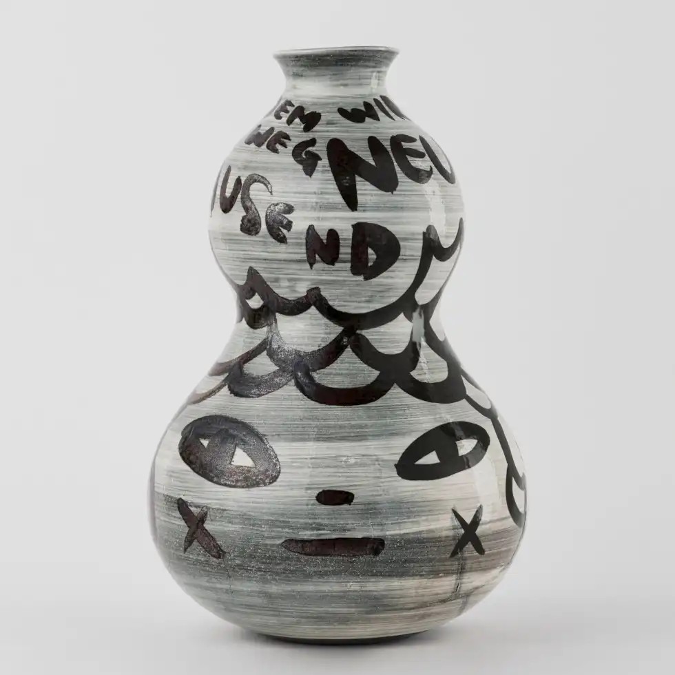 "Bomb Love", Banksy (2003) "I who await the arrival, any moment now, of my art Awaiting the arrival of my heart's glorious consolation Years passed before I knew it Because I felt lonely today I watched a white cloud in the sky", Yayoi Kusama (2021) "No Nukes", Yoshitomo Nara (2022) "Campbell’s Soup I: Tomato", Andy Warhol (1968)