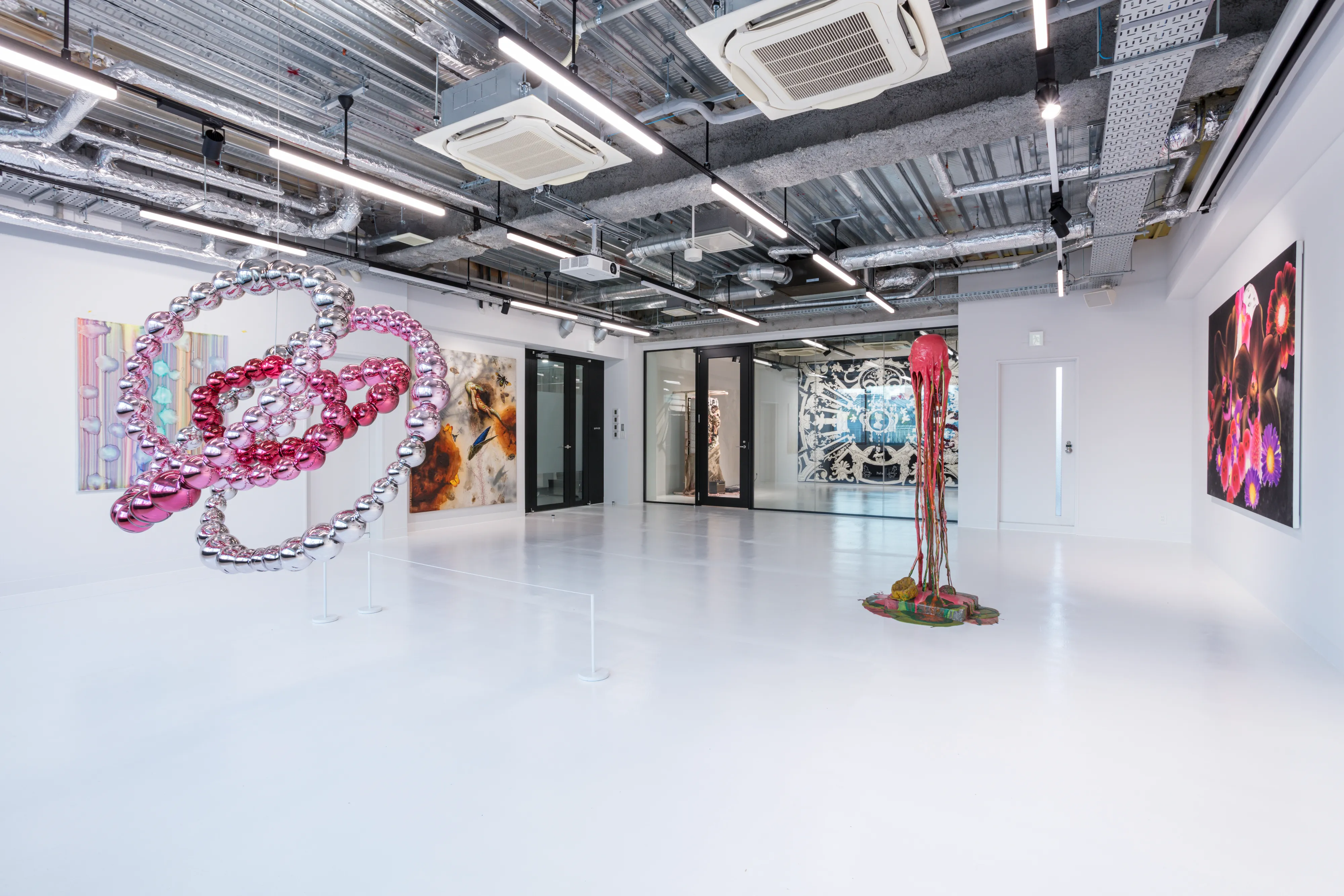 ベルナール・フリズ「Bitje」2019年 ジャン・ミッシェル・オトニエル「pink Lotus」2015年 マーク・クイン「The Moon of Jupiter」2010年 水戸部七絵「remember love」2022年