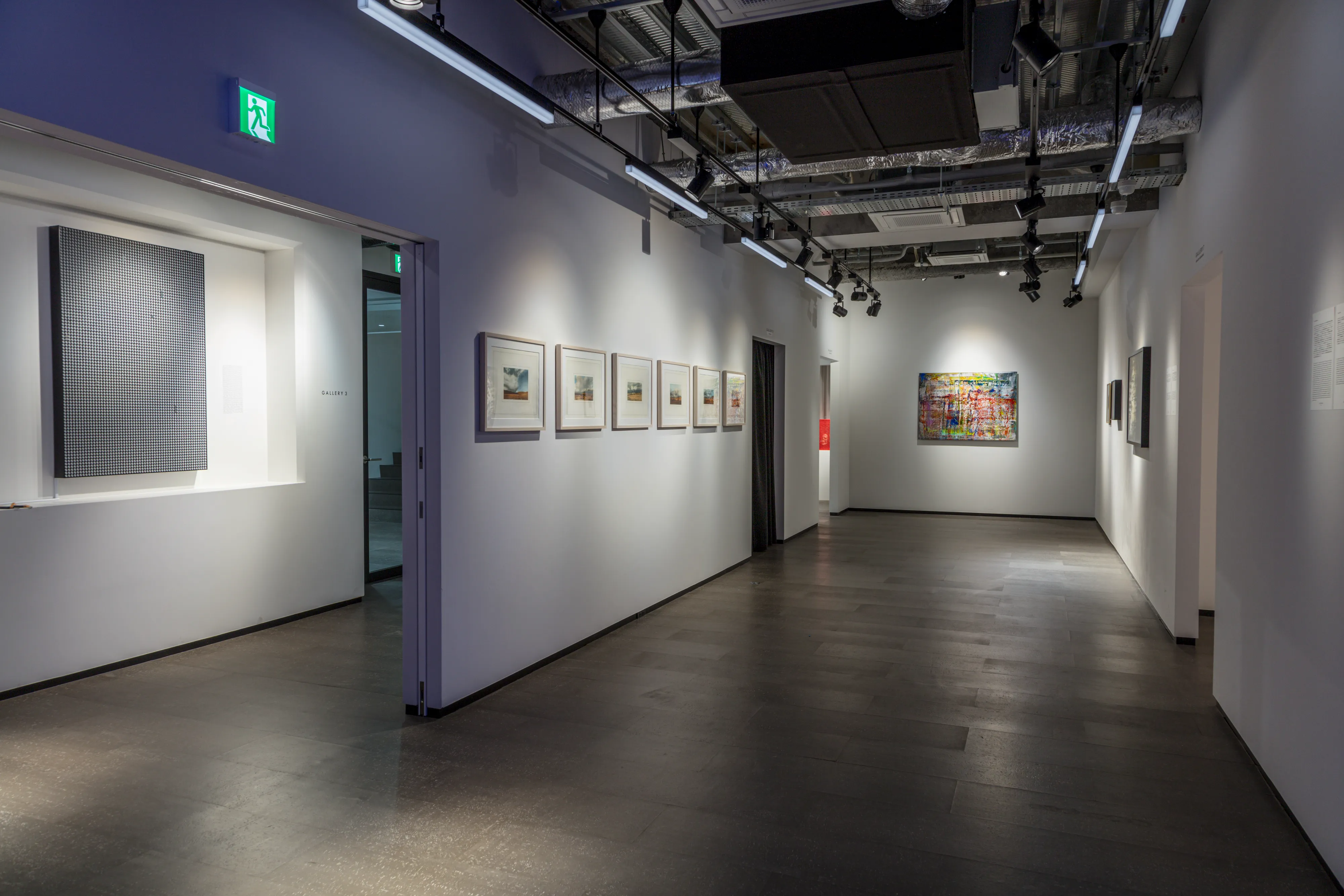 <<2階>> ゲルハルト・リヒターとジェームズ・タレル 2階の中心スペースで、ゲルハルト・リヒターの作品群によって構成される空間は、物質性とイメージの間に漂う揺らぎを静かに照らします。さらに今回から、ジェームズ・タレルによる新たな常設展示室が加わります。光と知覚の相互作用を体験として捉えるその空間は、「見る」という行為の根本に立ち返り、視覚と精神の境界を曖昧にします。光はもはや対象ではなく、思考そのもののメディウムとなります。